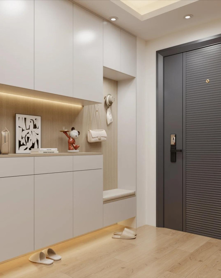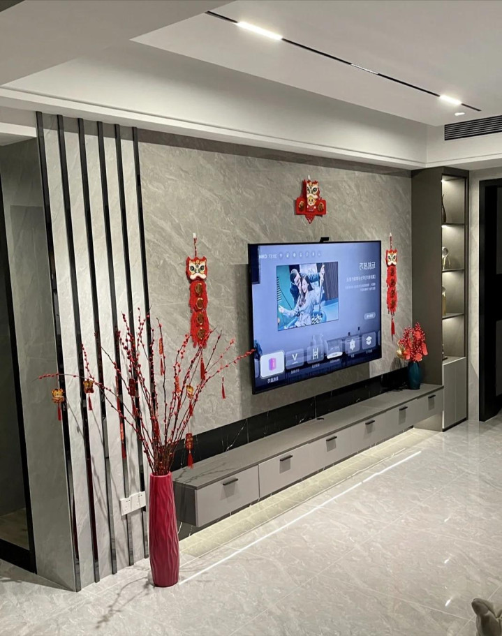 电视墙并没有用传统的大理石背景,而是贴了浅灰色硬包,整个空间看起来更有质感,而且非常安静,不刺眼。每一处细节都能看出他的生活品味是慢慢养出来的,不浮夸,但特别舒服。